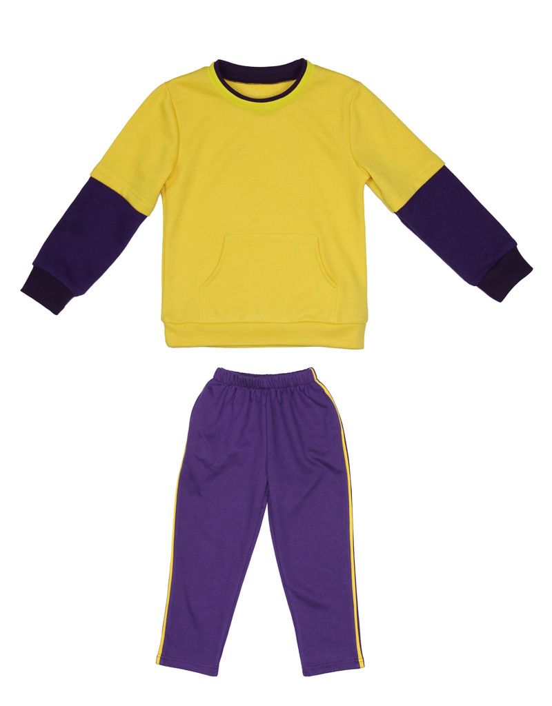 精品童装黄色圆领拼接AB卫衣春秋款套装