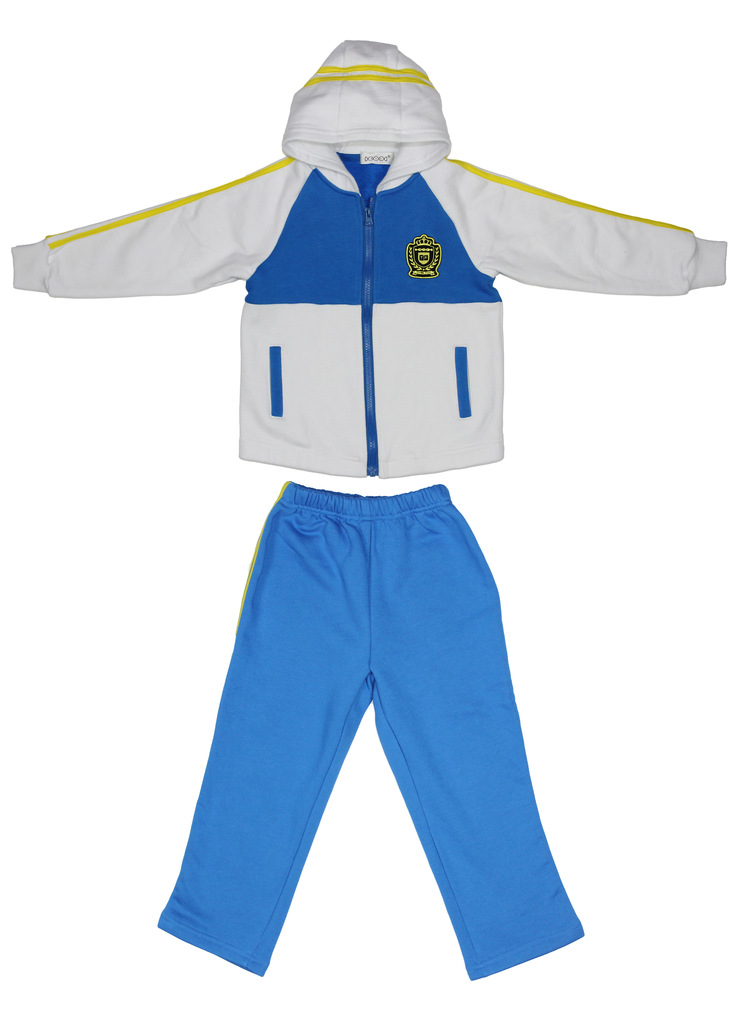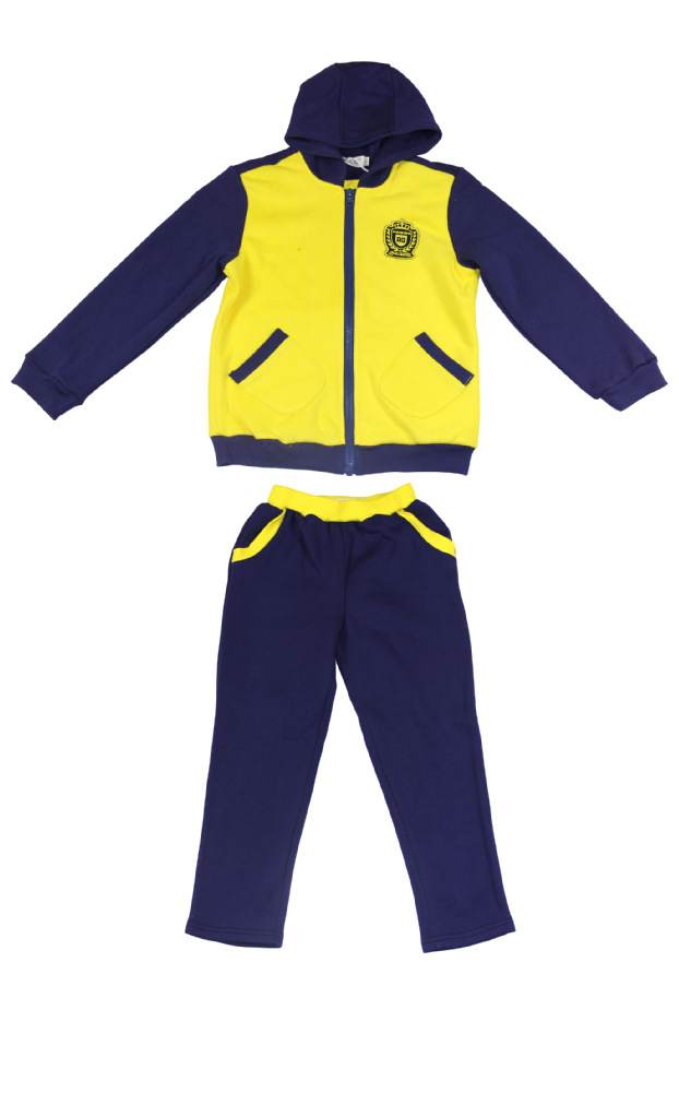 精品童装连帽拼接抓绒加厚冬装运动套装