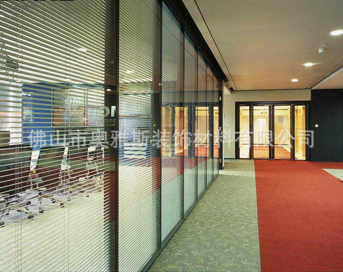 西安办公室铝合金中空百叶 透明磨砂钢化玻璃隔音成品高隔断墙