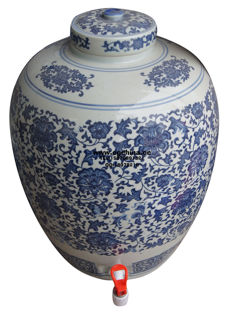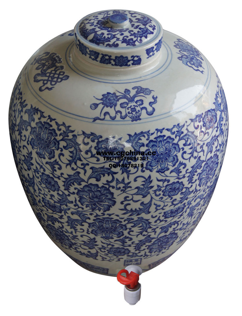 景德镇陶瓷酒瓶青花酒坛酒缸50斤全手工绘画雕刻密封带龙头0170