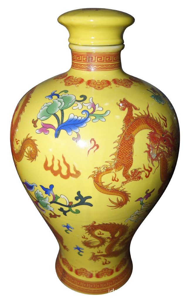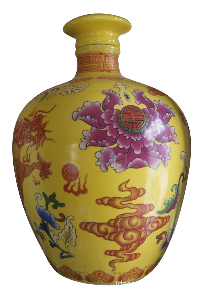 景德镇陶瓷酒瓶黄色酒坛酒缸酒具酒壶酒杯3斤黄釉密封0408