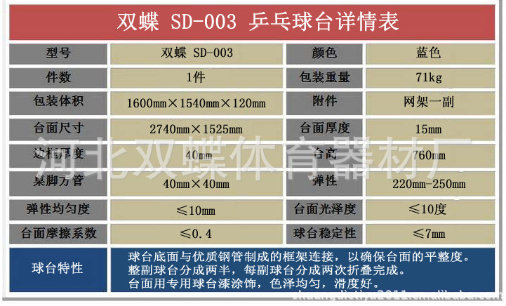 厂家直销各种室内乒乓球台 双蝶牌T3526-单折式球台
