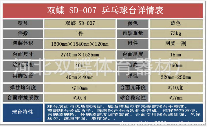 厂家直销各种室内乒乓球台 双蝶牌T2123-单折移动式球台