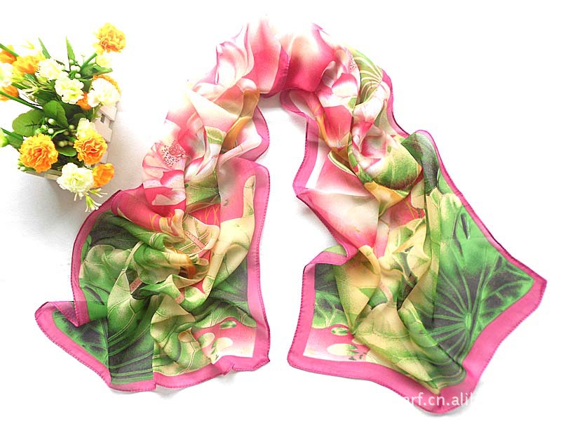 真丝丝巾 欧美印花真丝丝巾100%桑蚕丝