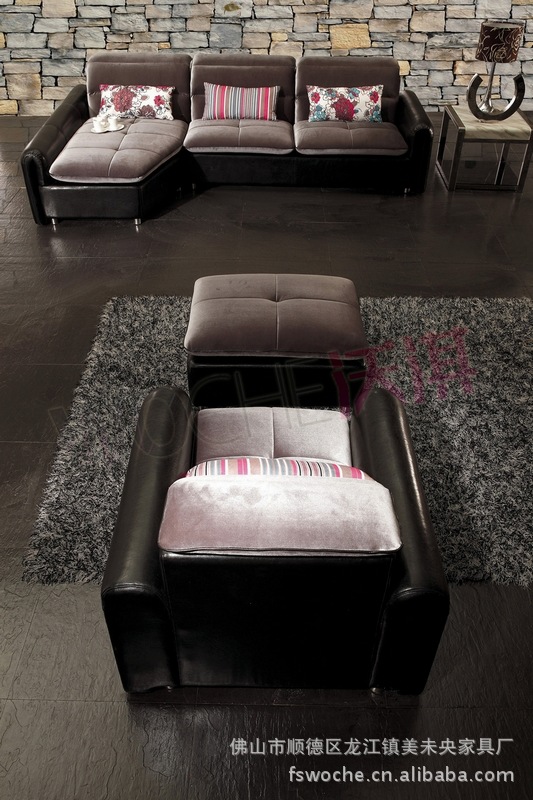 2012 沃淇现代休闲款皮配布艺沙发 客厅沙发 (WQ5803)
