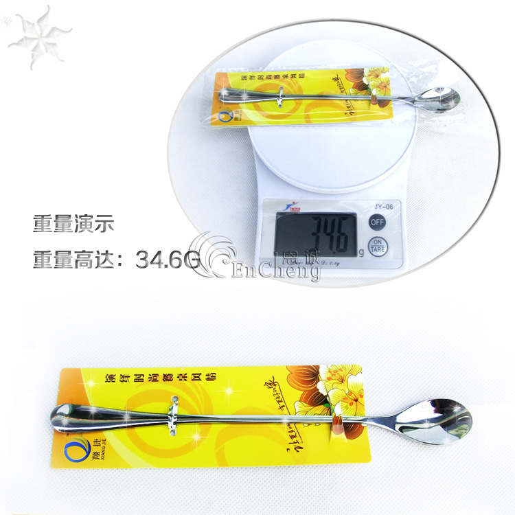 翔捷B1010圆冰匙XJ-8034 加厚不锈钢叉匙 长柄匙 搅拌勺 长冰更
