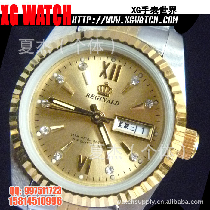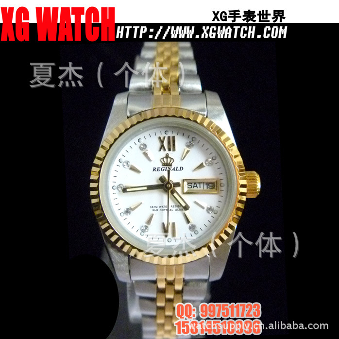 手表批发女表 防水手表双日历石英手表防水手表女士手表皇冠手表