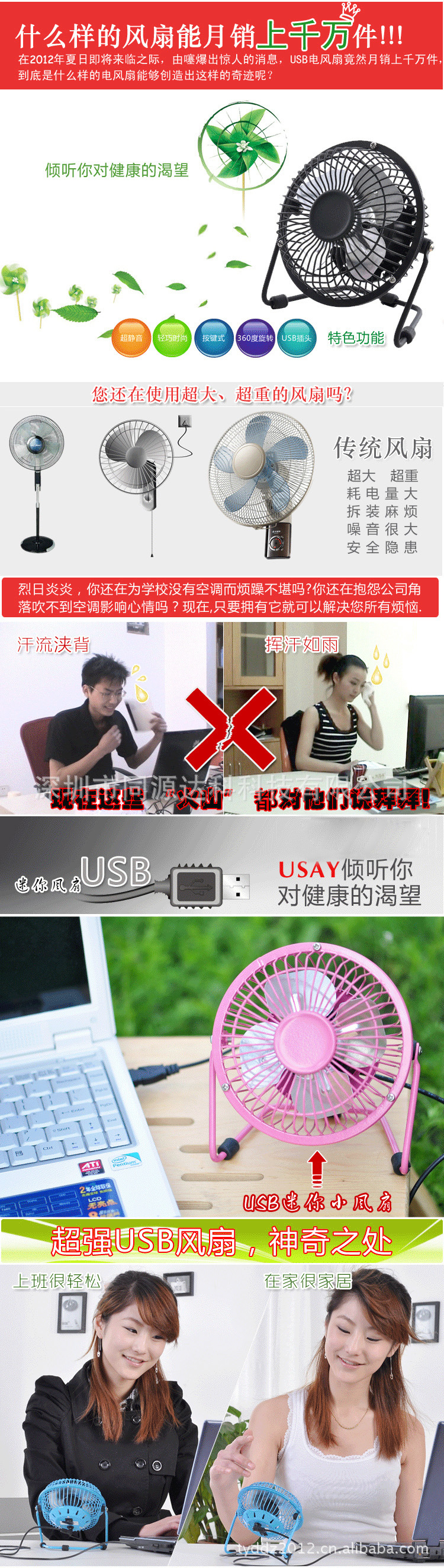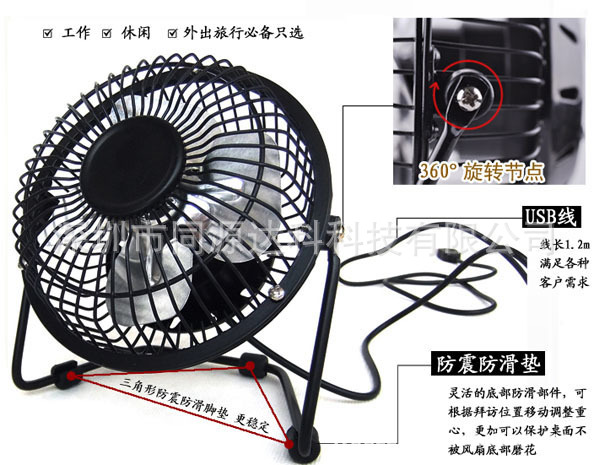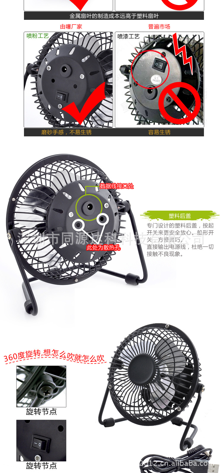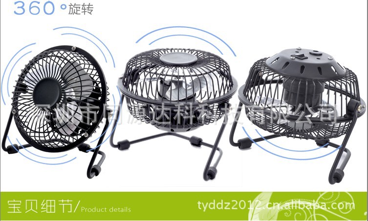 360度迷你USB铁艺金属旋转风扇4寸 超静音学生迷你小风扇 电风扇