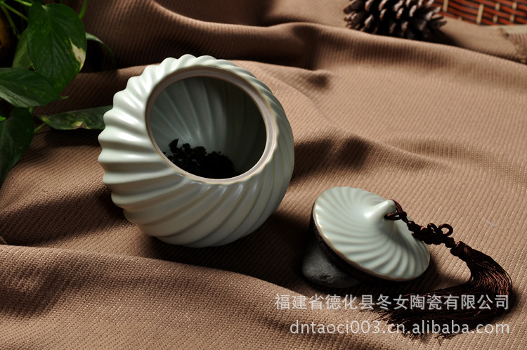 厂家直销正品汝窑茶叶罐没档汝瓷可养茶叶罐高档储藏罐批发