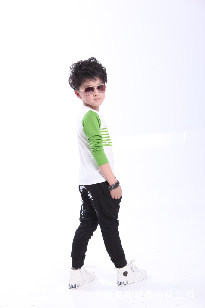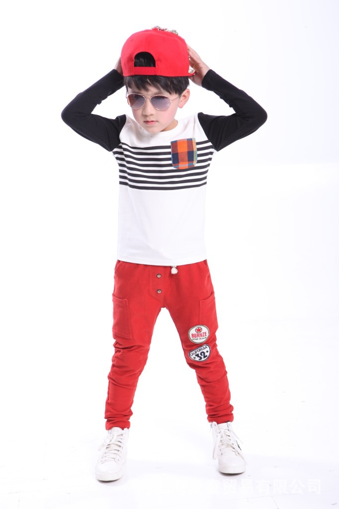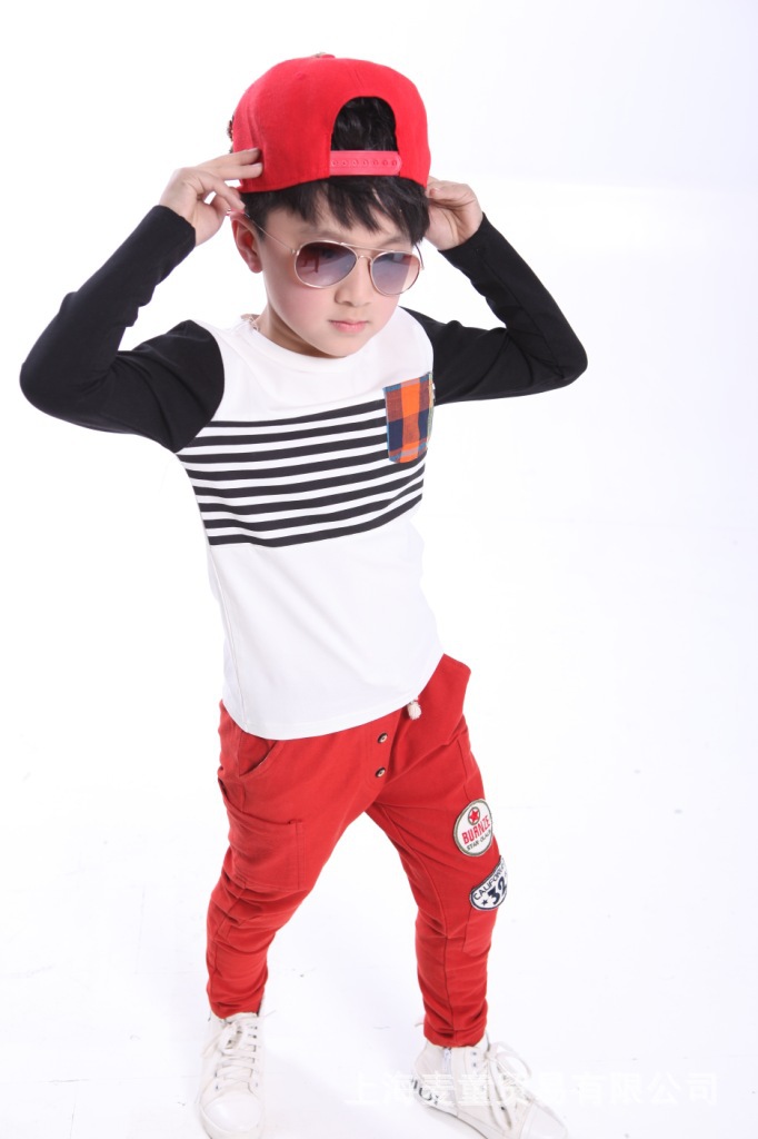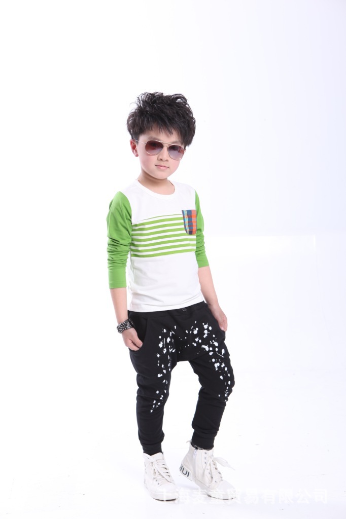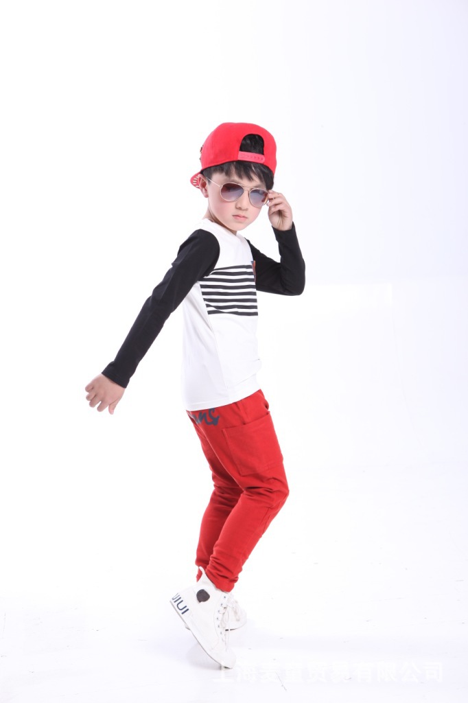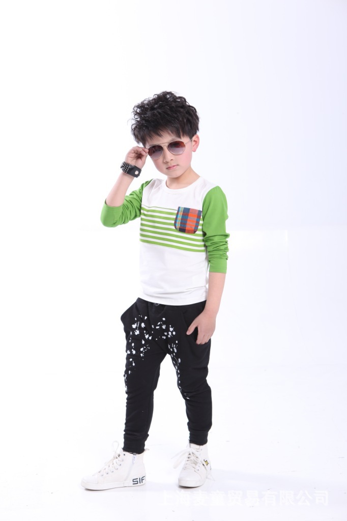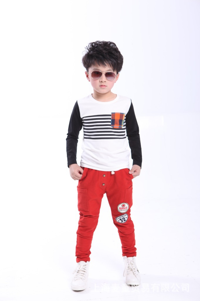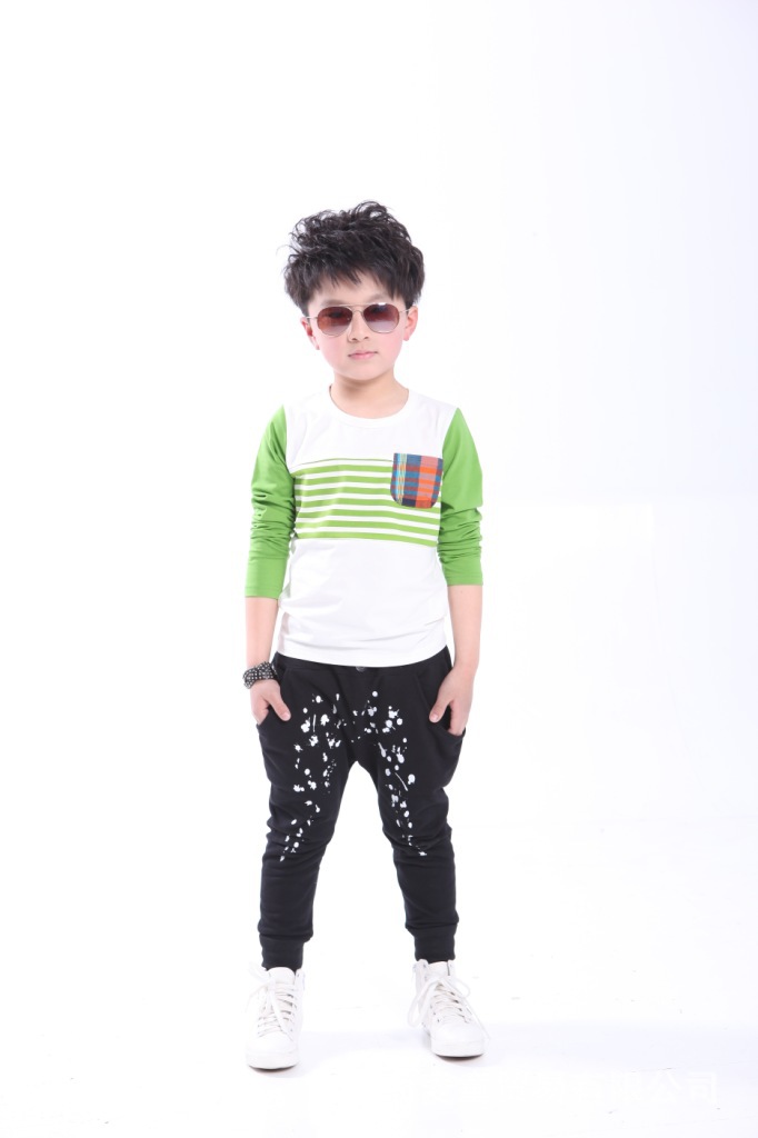 宾果 拼接版新款童t恤 圆领条纹童装 热销双色长袖男女童t恤