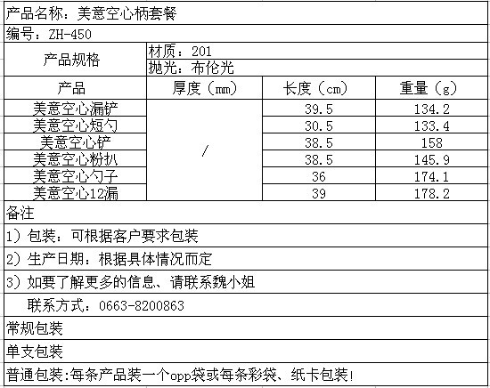 销售厨之福ZH-450无磁美意空心柄厨具七件套