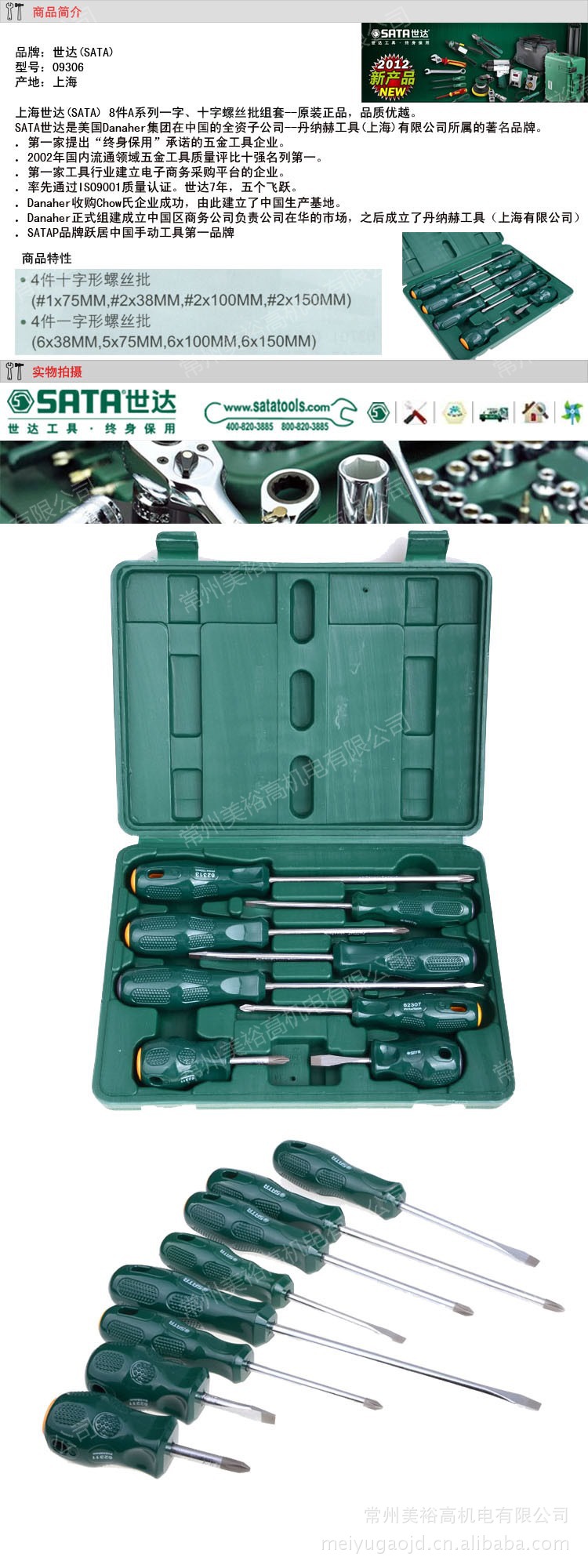 SATA世达手动工具 正品行货 8件套A系列一字十字螺丝批组套 09306