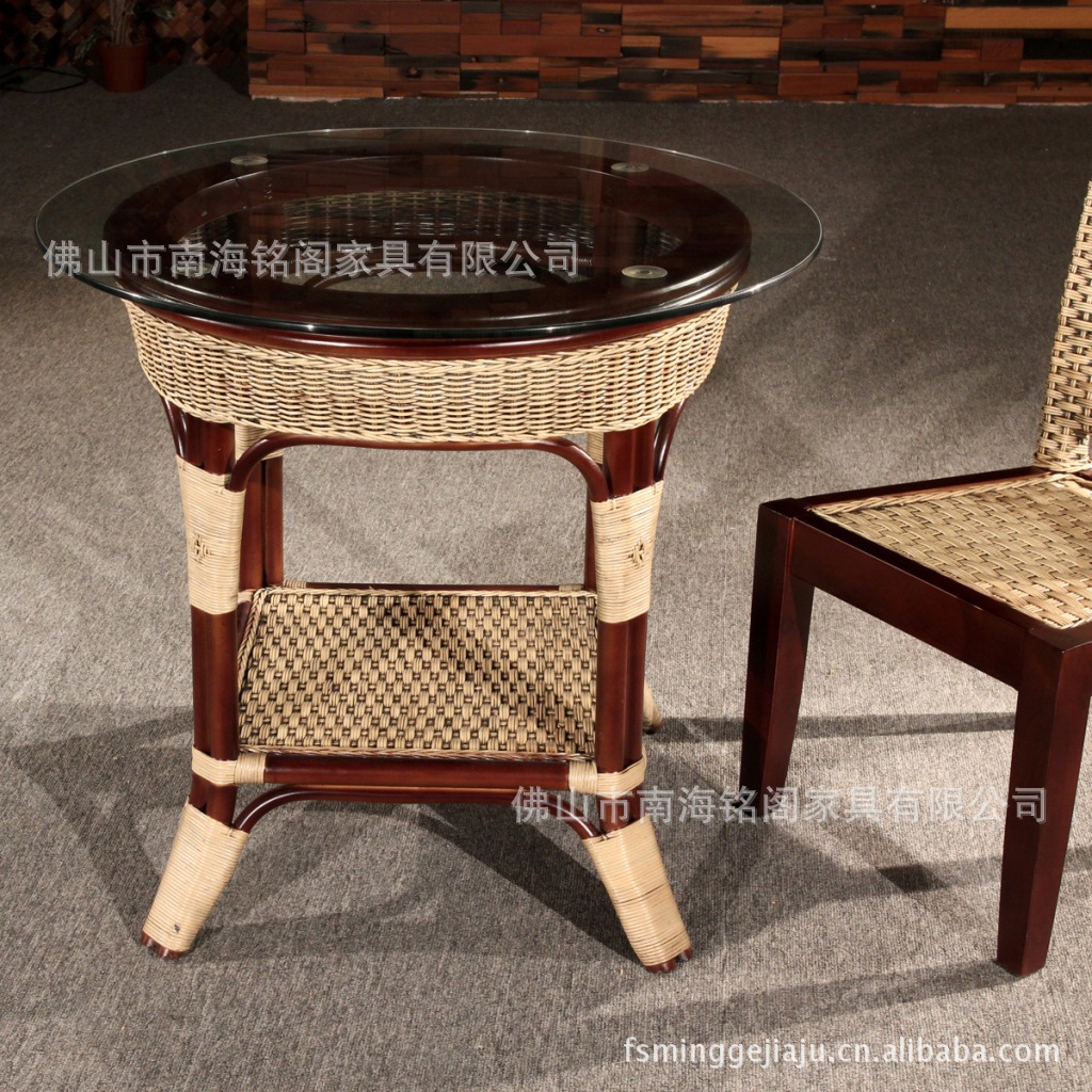 厂家直销 印尼藤条家具 藤茶几 藤角几 玻璃茶几