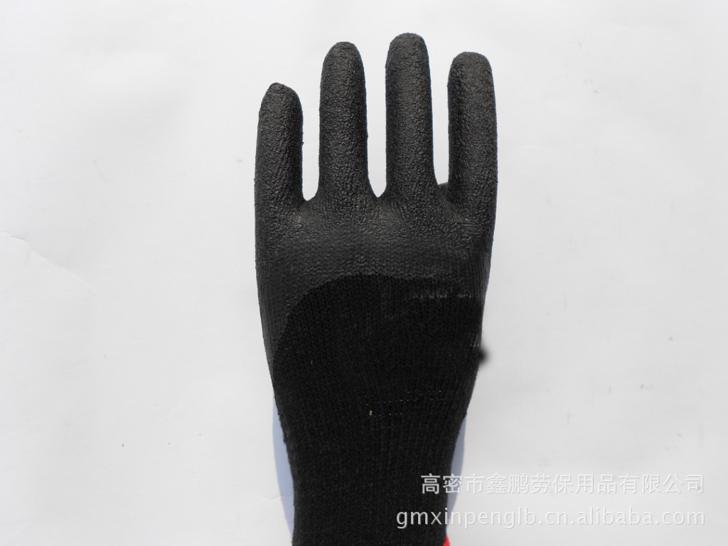 现货批发 浸胶手套 十针起绒(拉毛)黑纱黑胶皱纹半挂浸胶手套
