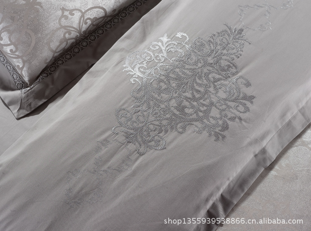 南通货源 威尔士灰色 贡缎镂空全棉四件套批发 跑量必备