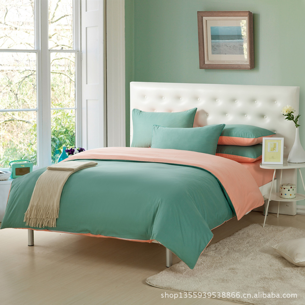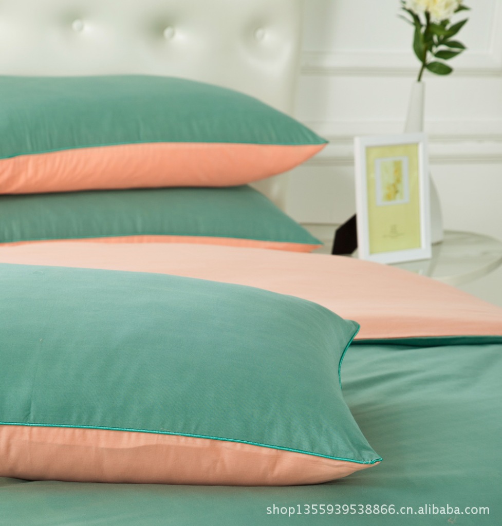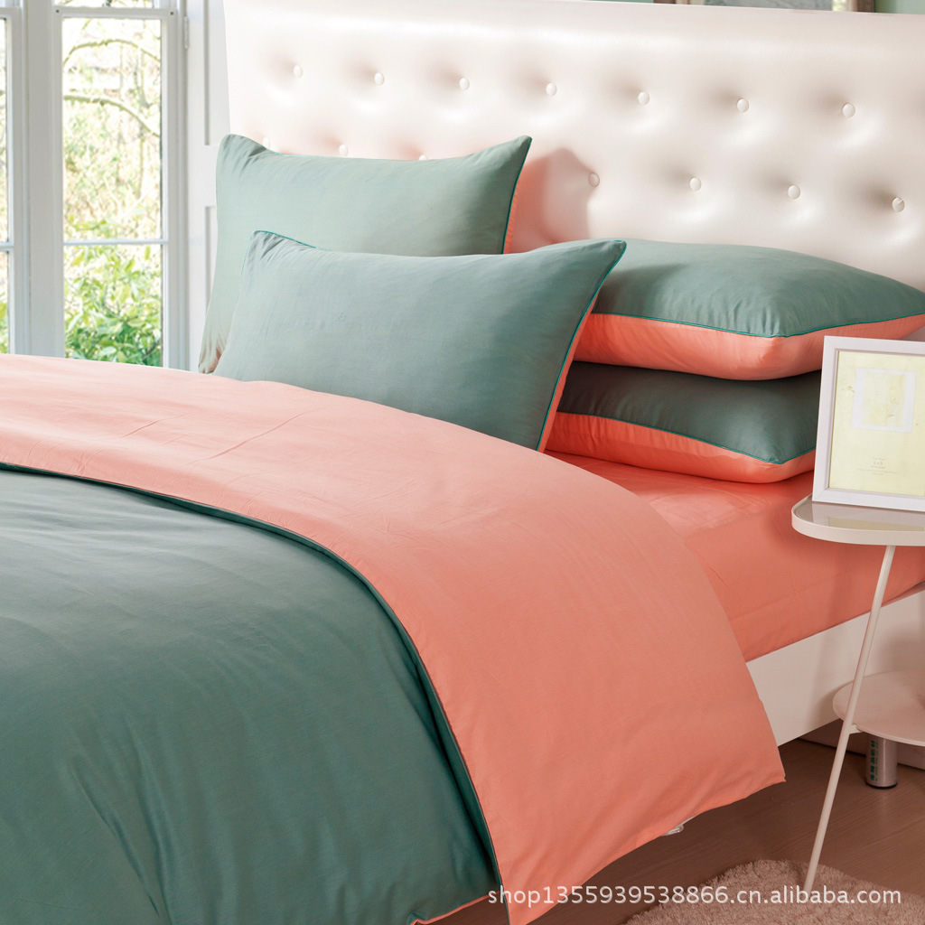 南通货源 墨绿玉 全棉素色双拼四件套件批发 跑量必备