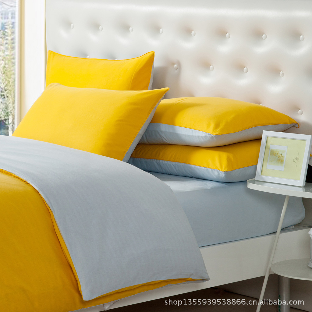 南通货源 杏黄兰 全棉素色双拼四件套件批发 跑量必备