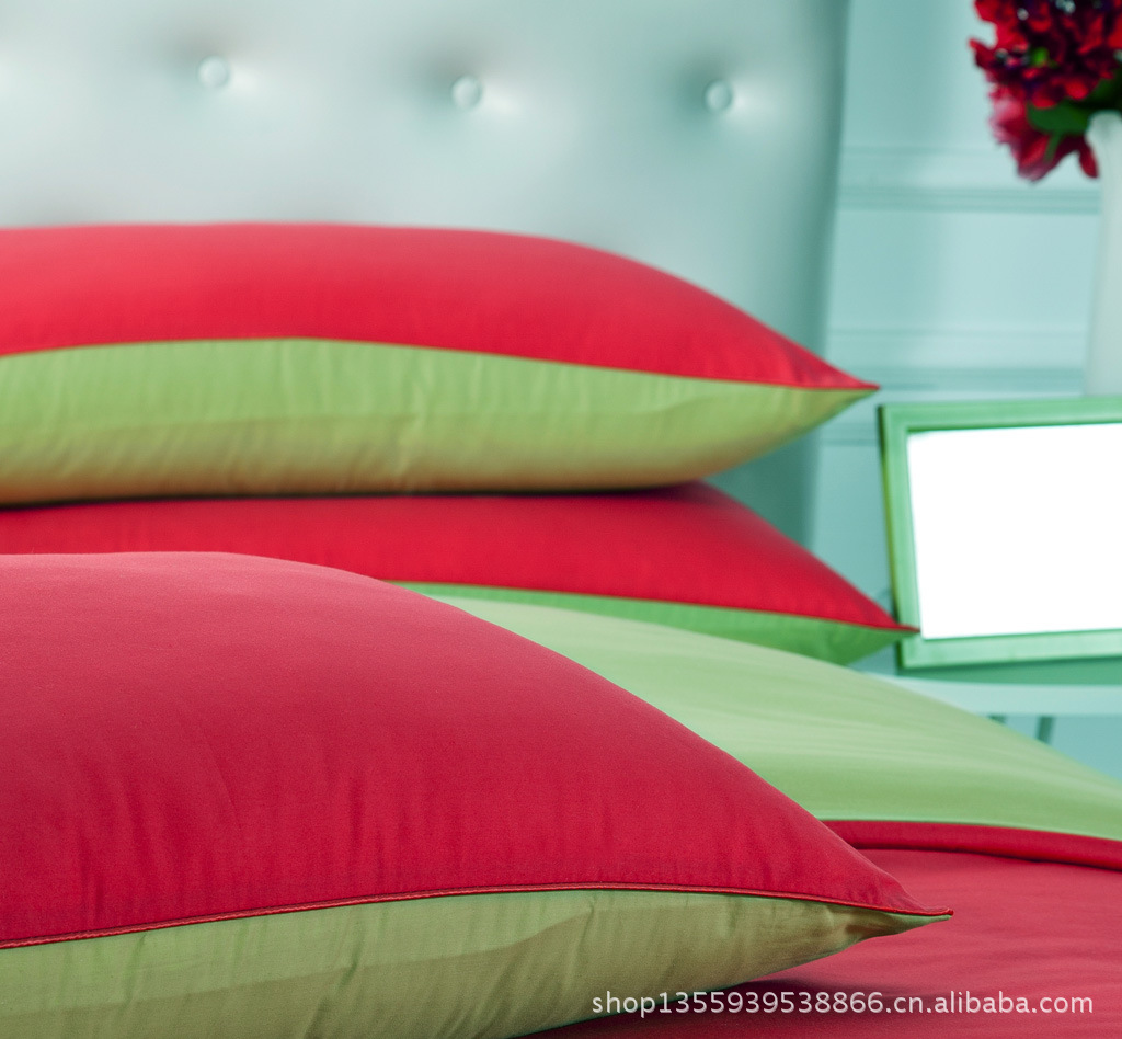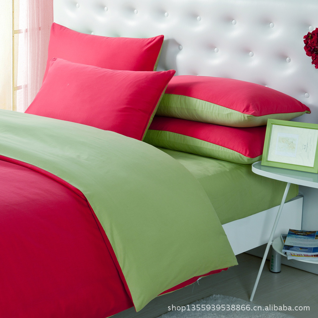 南通货源 砖红绿 全棉素色双拼四件套件批发 跑量必备