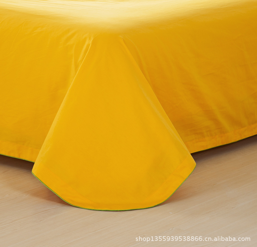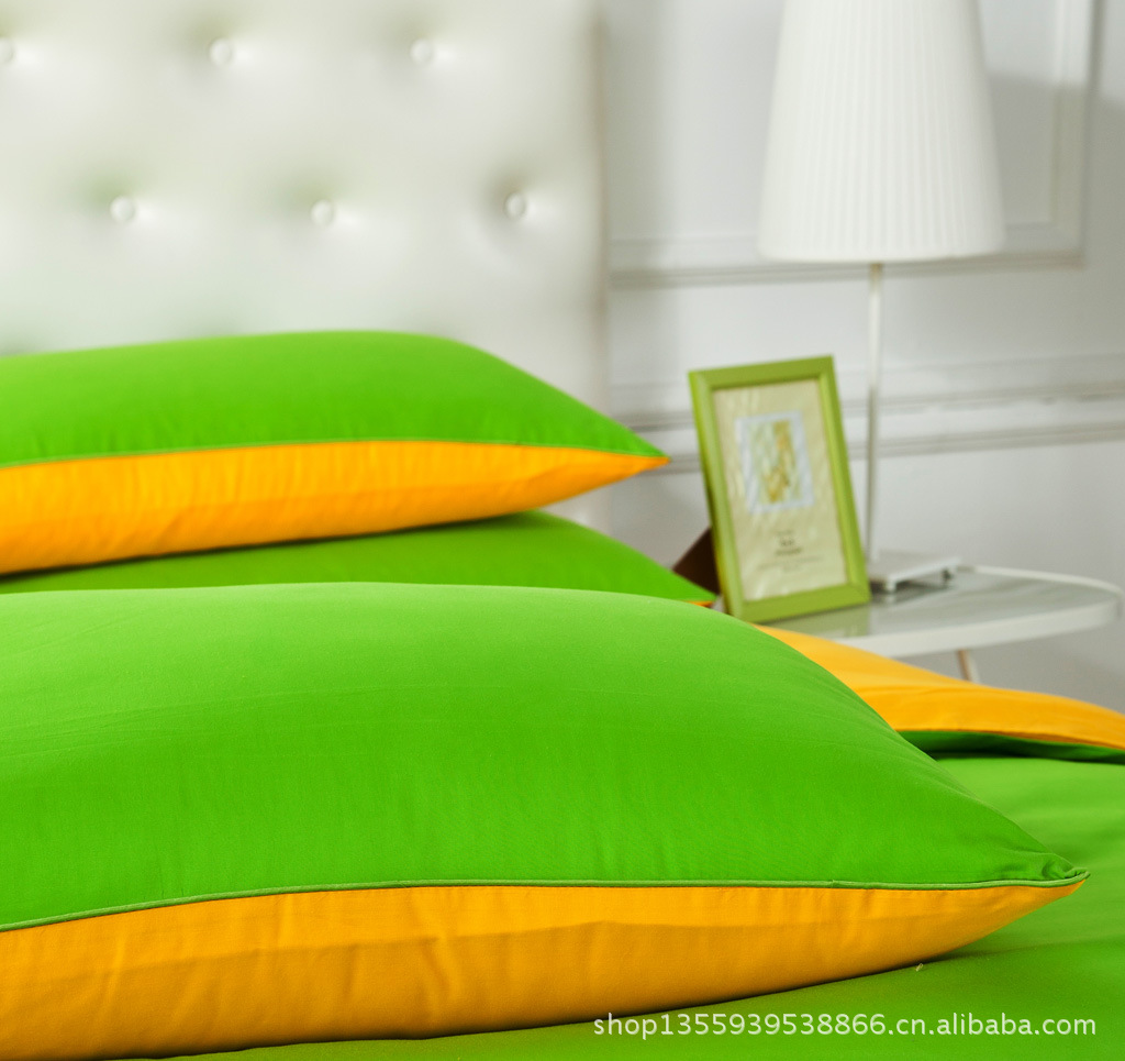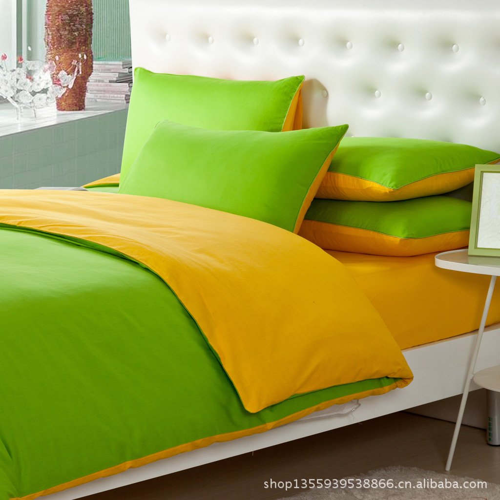南通货源 杏黄绿 全棉素色双拼四件套件批发 跑量必备