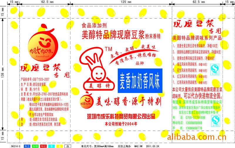 豆香加麦香味豆浆用调味剂/豆浆添加剂/豆浆秘方