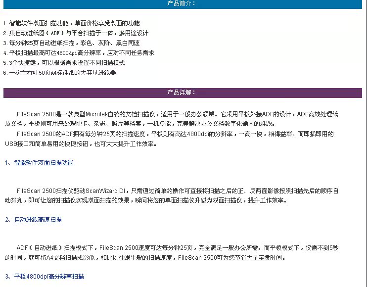 中晶扫描仪 Microtek FileScan 2500 fs2500 高速文档扫描仪