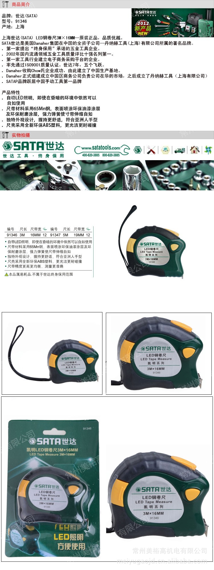 SATA世达 工具 手动工具 正品行货 LED钢卷尺 91346 91347
