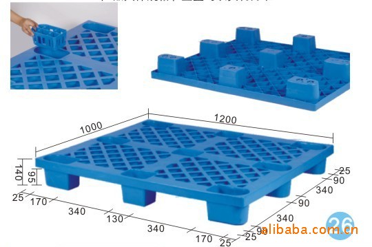蓝黑色塑料卡板,九脚川字塑胶托盘,新料旧料栈板,二手回收置换