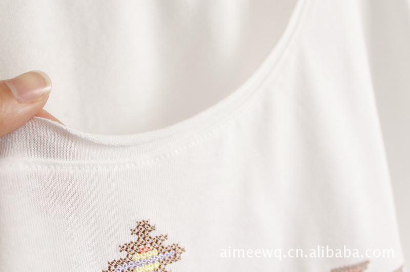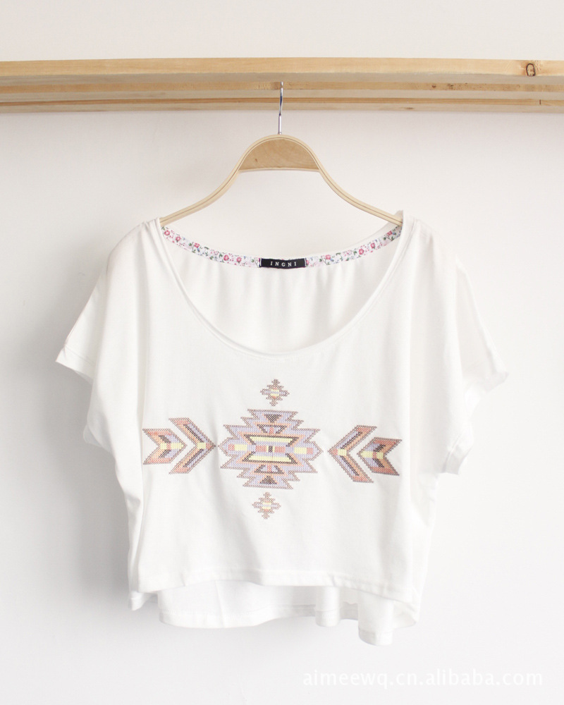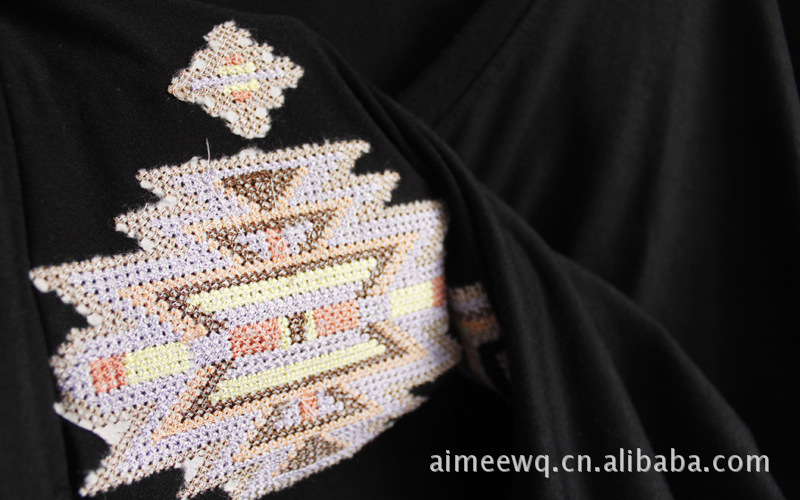 夏装女新款t恤 L088 十字型民族刺绣t 圆领短袖袖短款t恤 女