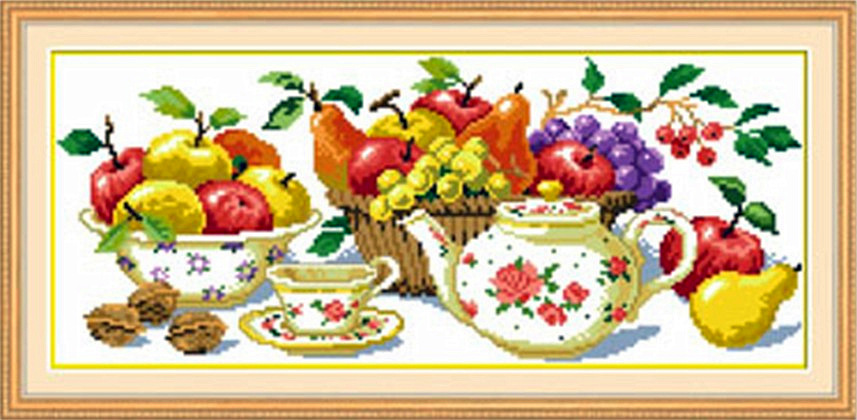 厂家供应高质量精准100印在布上十字绣缤纷水果餐厅挂画