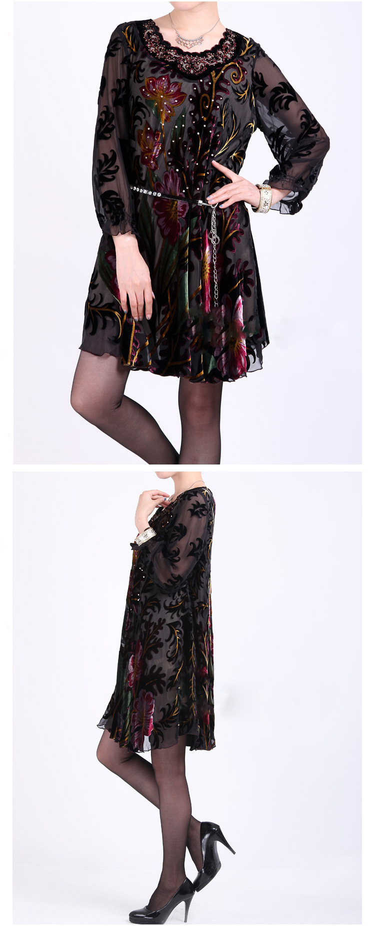 春装连衣裙真丝 13年国际款直供高档重工花纹复古风女装2620
