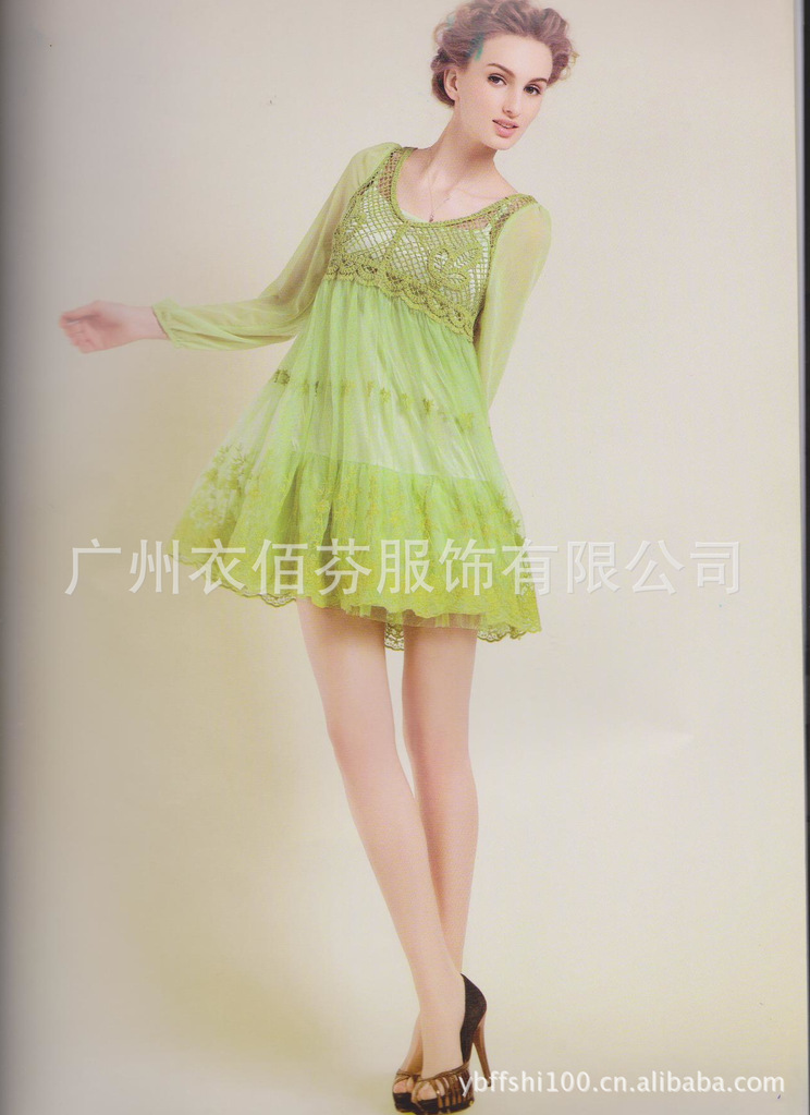 2013夏装新款女装 甜美娃娃领蕾丝提花修身欧根纱连衣裙批发