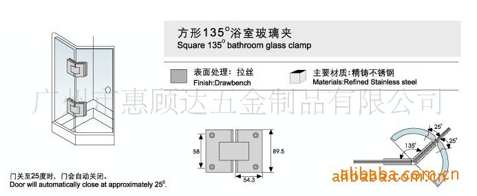 惠顾达5厘厚实心精铸镜光135度玻璃门合页/浴室夹/淋浴房合页