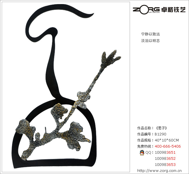 ZORG卓格铁艺B1290号艺术品《君子》,铁艺金属工艺品墙饰壁挂