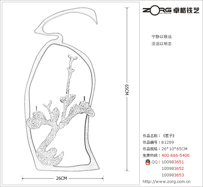 ZORG卓格铁艺B1289号艺术品《君子》,铁艺金属工艺品装饰墙饰壁挂