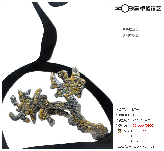 ZORG卓格铁艺B1288号艺术品《君子》,铁艺金属工艺品墙饰壁挂