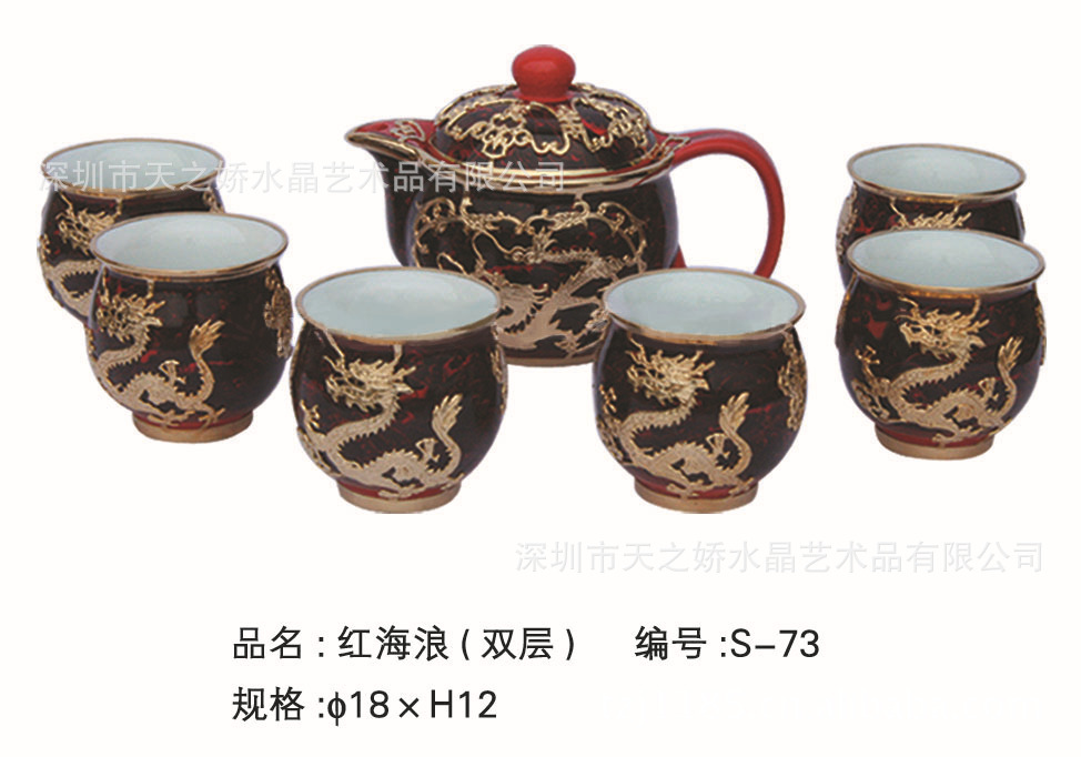 海浪类茶具:八件富贵黄双层、红海浪双层、黄海浪大茶海