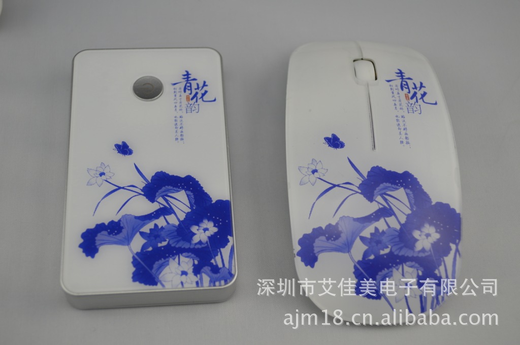 批发个性特色电子数码礼品青花移动电源高档珍藏组合套装2件套