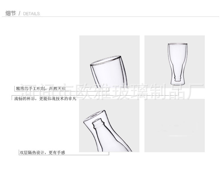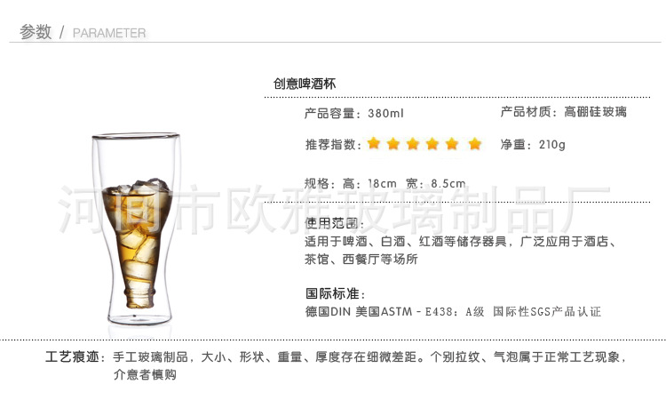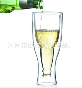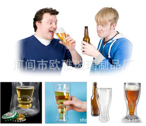 厂家提供高脚玻璃杯 耐热玻璃杯双层啤酒杯 冰杯双层杯