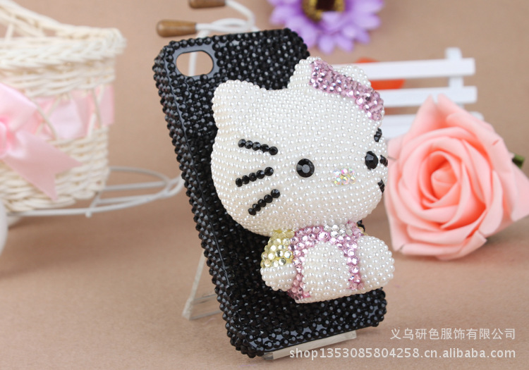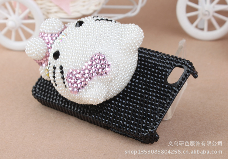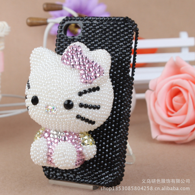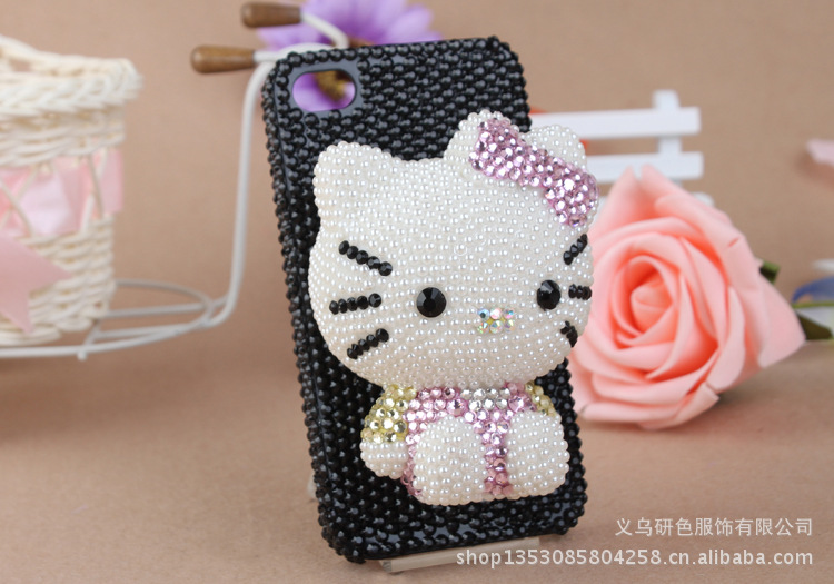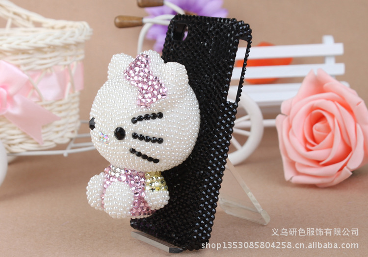 公仔贴钻手机壳 加菲猫 kitty猫贴钻珍珠手机壳 苹果满钻手机壳
