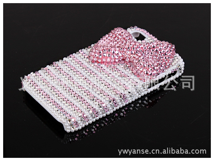 蝴蝶结水钻条纹手机壳 IPHONE4贴钻手机保护套 IPHONE5手机壳订制