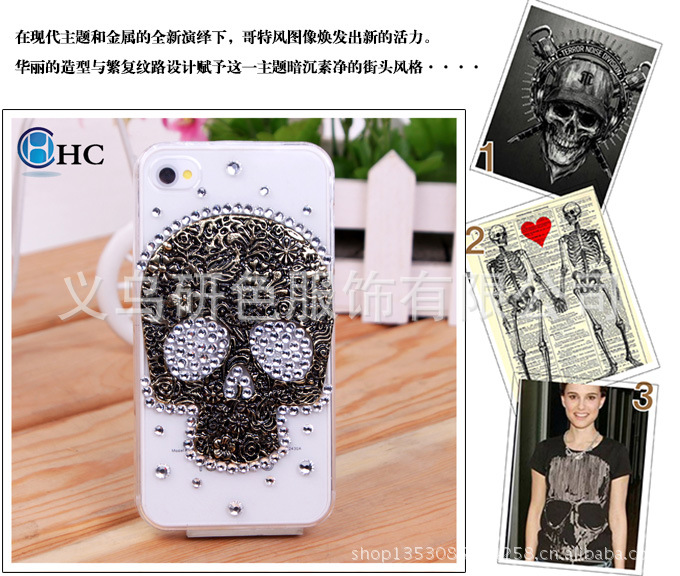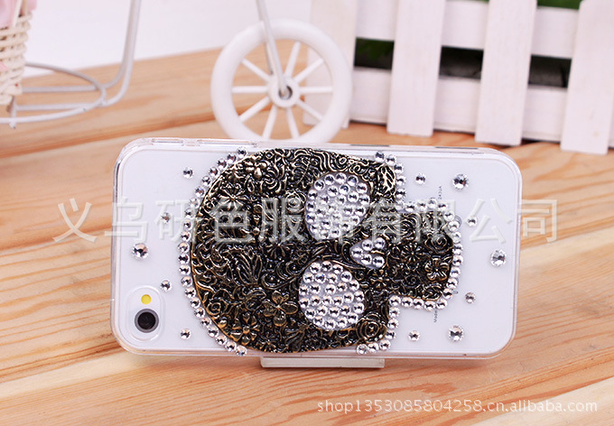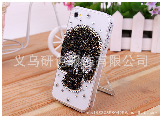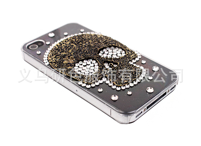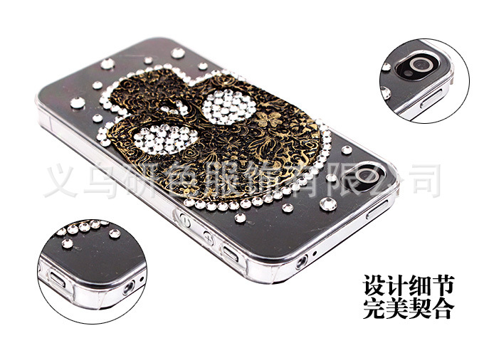 骷髅头水钻贴钻手机壳 骷髅 苹果手机壳 IPHONE4手机套 手机外壳