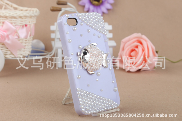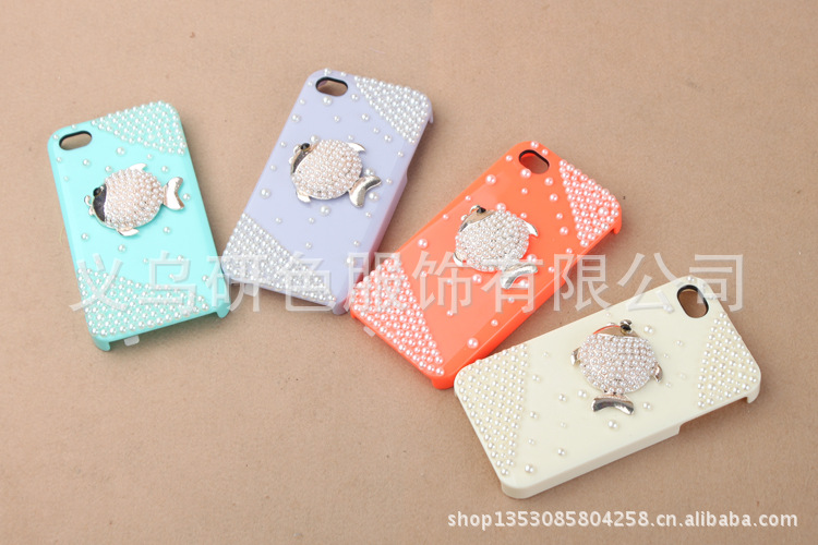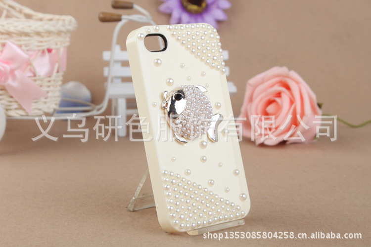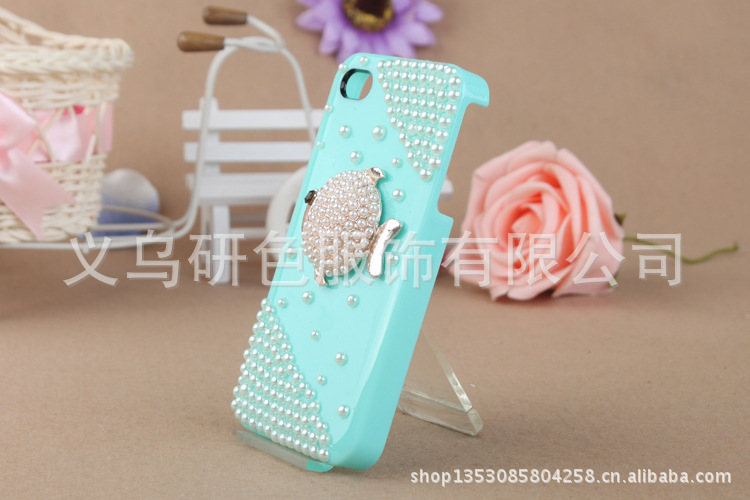 苹果4镶钻手机外壳 小鱼儿贴钻珍珠手机壳 IPHONE4S贴钻手机壳