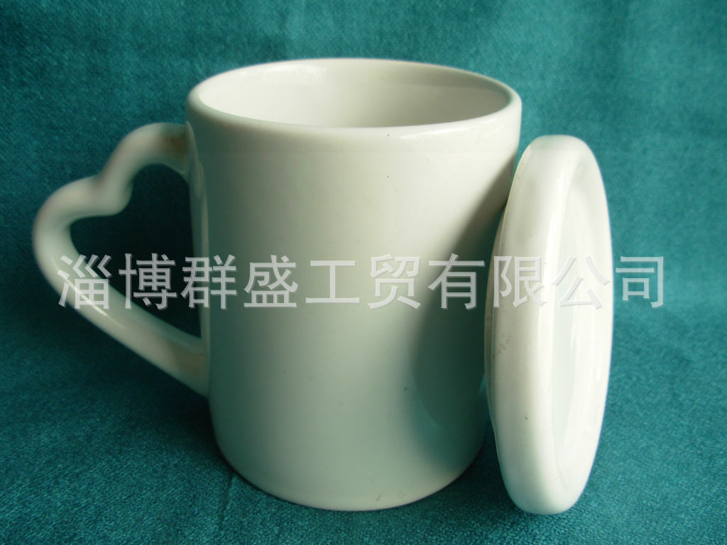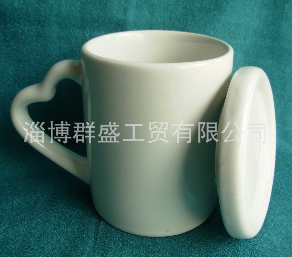 淄博供应白色的、带盖子的、可以定做的、厂家直销陶瓷马克杯子