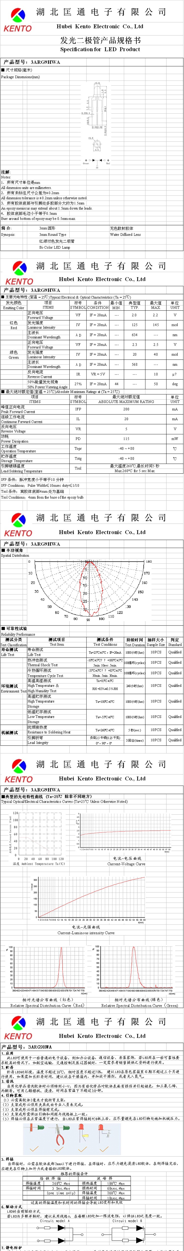 湖北匡通电子KENTO 实地认证 3mm红绿双色白发雾状共阴长脚