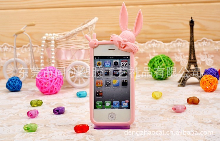 苹果手机套,硅胶手机套,超可爱兔耳朵手机套