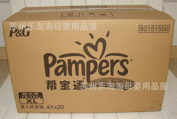 帮宝适纸尿裤XL80片整箱80片XL4片×20包