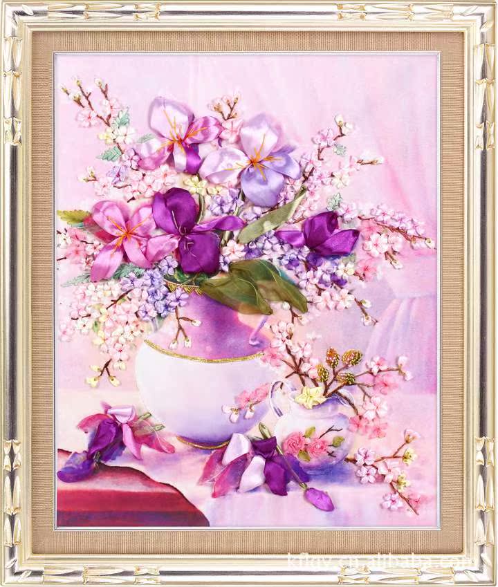 批发供应丝带绣挂画“花语呢喃”厂家直销