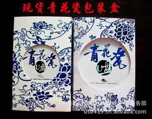 现货青花瓷u盘 陶瓷u盘 青花龙凤陶瓷u盘 青花天地盖礼品盒包装