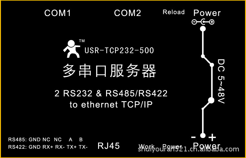 以太网转多串口服务器 双RS232接口单RS485/422 透明传输