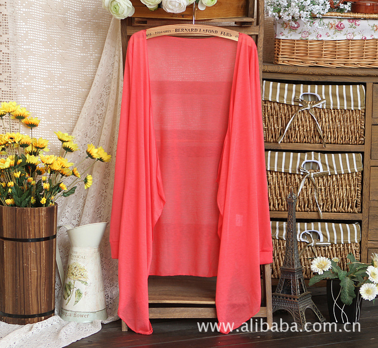 2012夏糖果色开罩防晒遮阳新款日系无扣披肩款长袖衣空调薄针织衫